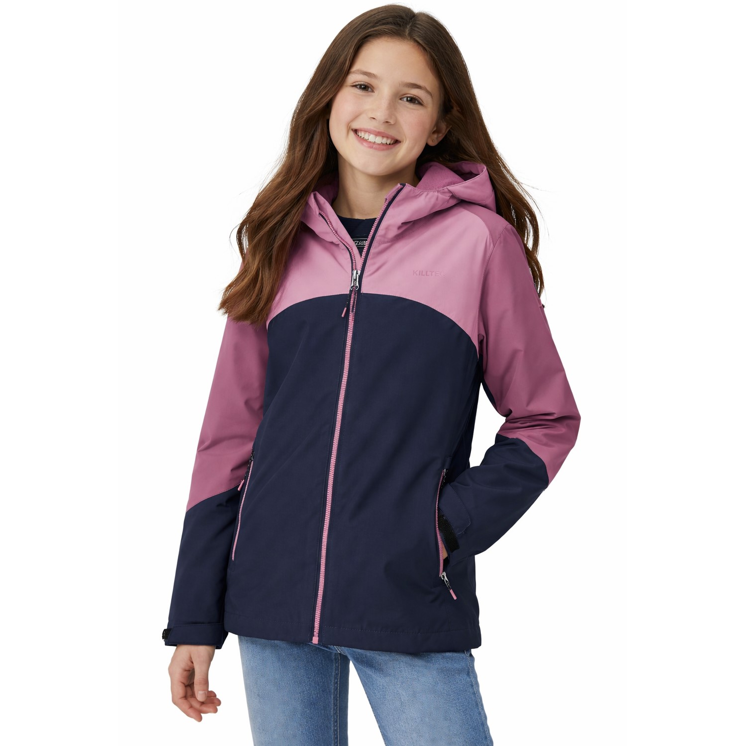 - Wasserdichte Mädchen Funktionsjacke 10.000 mm – Die killtec Jacke schützt zuverlässig vor Regen, Wind und Nässe dank verschweißter Nähte und PU-Laminat, ideal als Regenjacke Mädchen für Alltag, Schule und Outdoor.