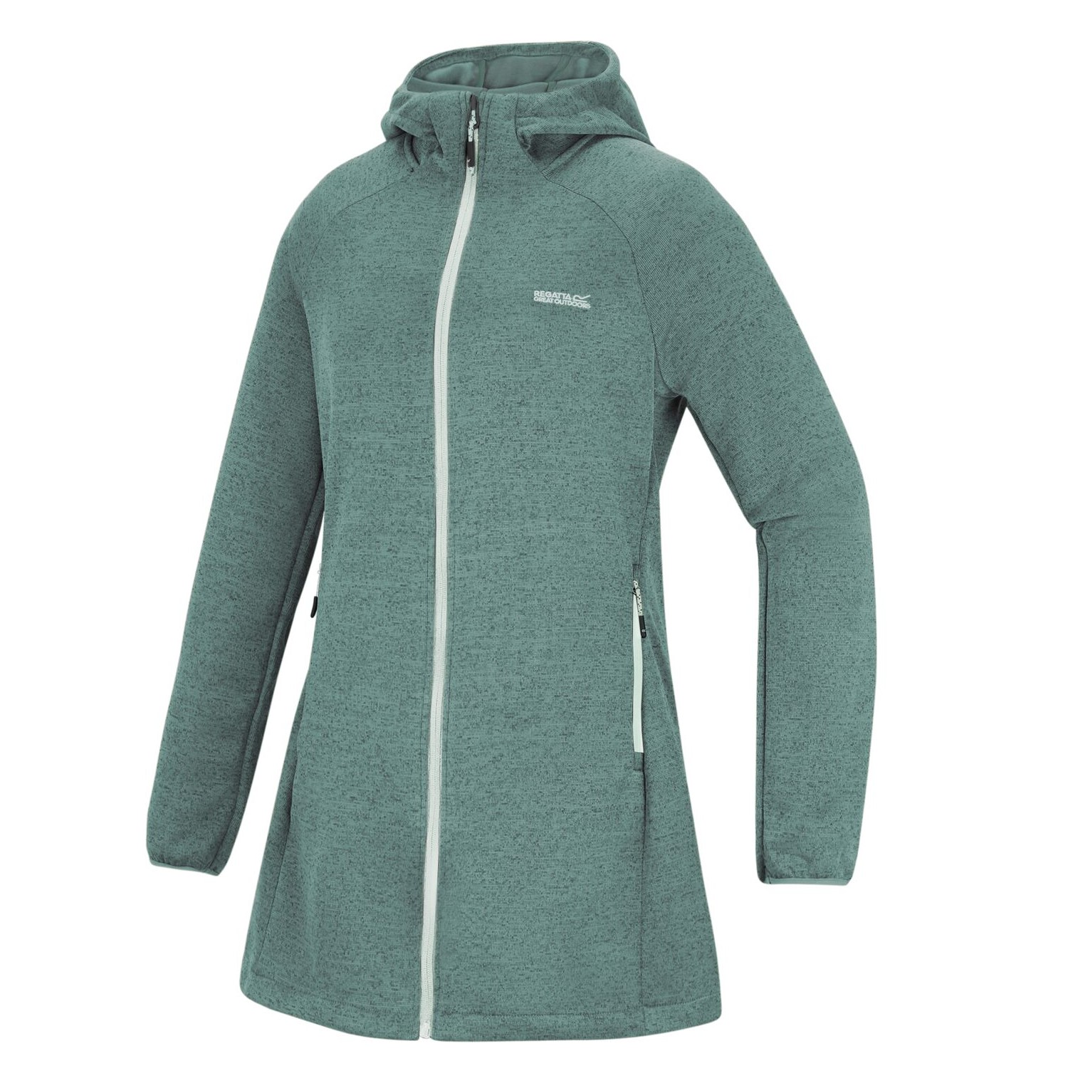 Die Regatta Bloomfield Fleecejacke für Damen überzeugt mit meliertem Polyester in Strick-Optik, langem Schnitt und bequemer Passform. Das weiche Material hält angenehm warm und sorgt für hohen Tragekomfort beim Walken, Spazierengehen oder im Alltag. Die fixierte Kapuze mit Stretch, elastische Ärmelabschlüsse und zwei Reißverschlusstaschen bieten Schutz vor Wind und praktischen Stauraum. Ideal für sportliche und lässige Looks.